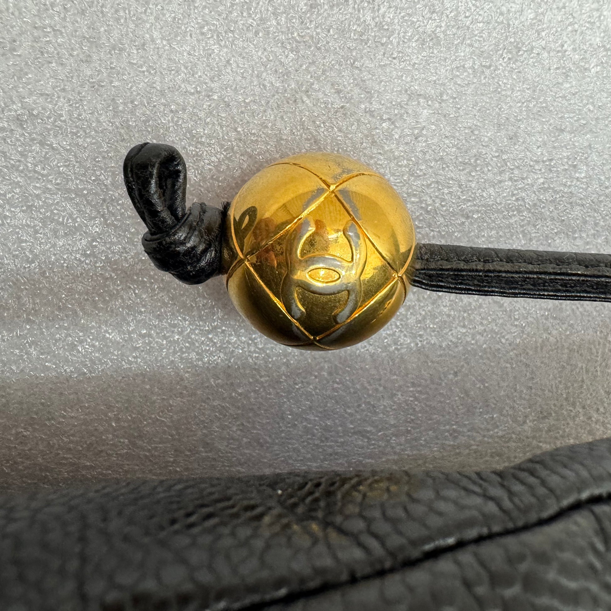 CHANEL Black Caviar leather Large tote/Shoulder bag with Front Pocket