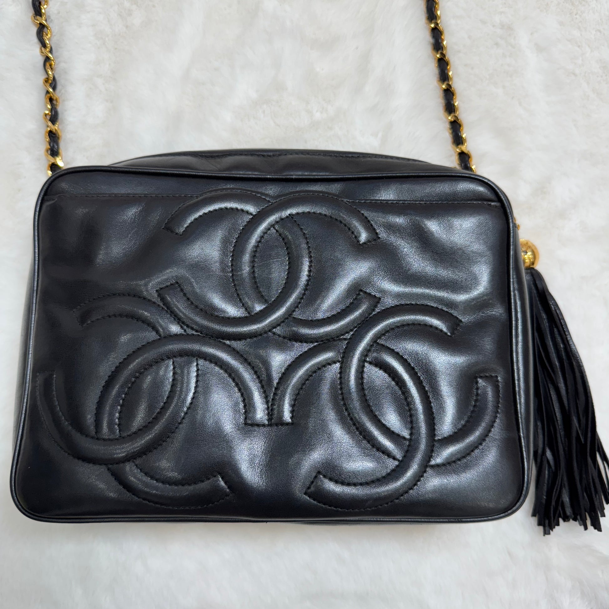 Elevate your ensemble with the CHANEL Black Lambskin Triple CC Shoulder Bag. Crafted from supple lambskin, this refined crossbody features CHANEL’s iconic triple CC logo and a graceful tassel accent. Its versatile design offers both elegance and practicality, making it an exquisite accessory for day-to-night sophistication.