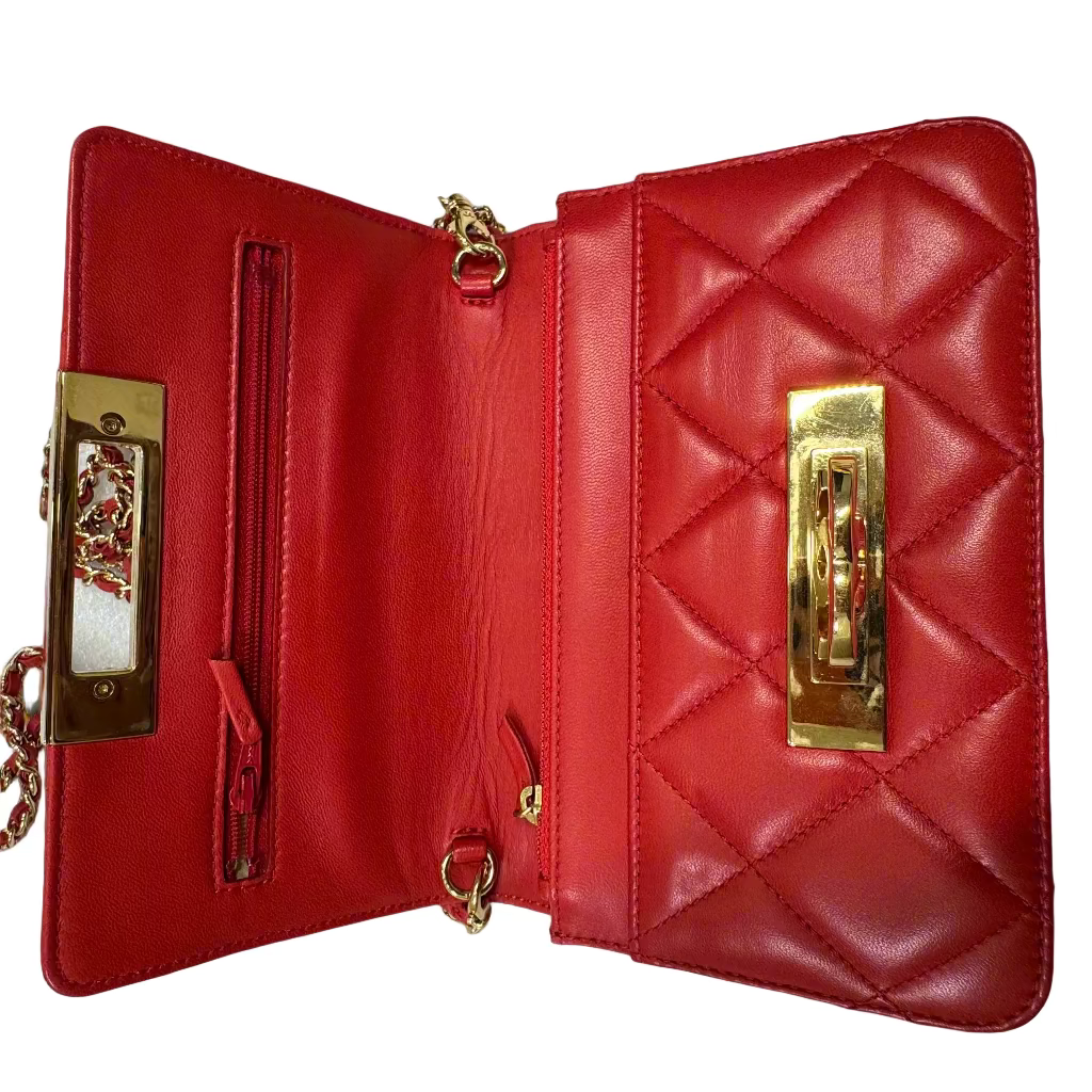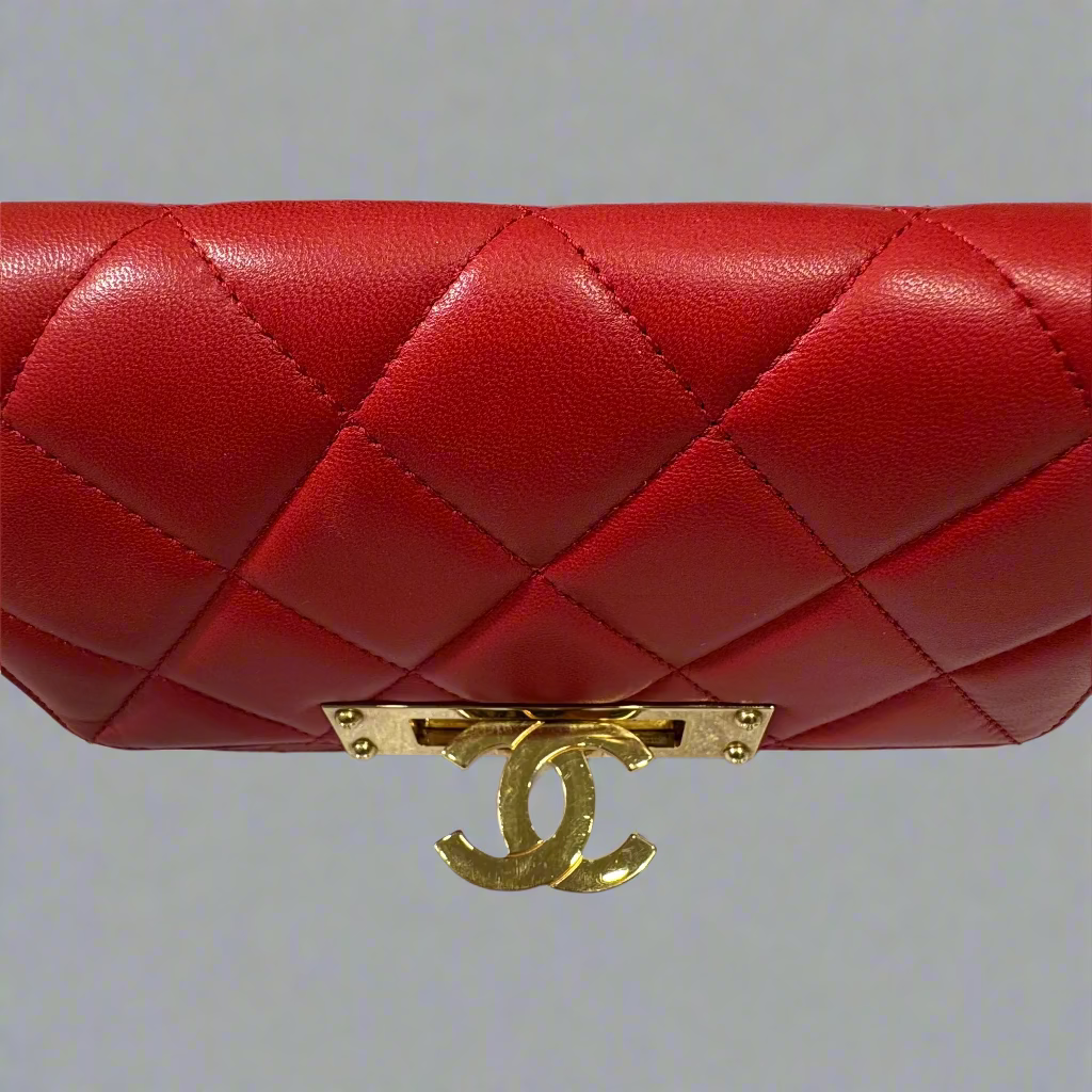 CHANEL large CC Logo clasp quilted red leather crossbody bag