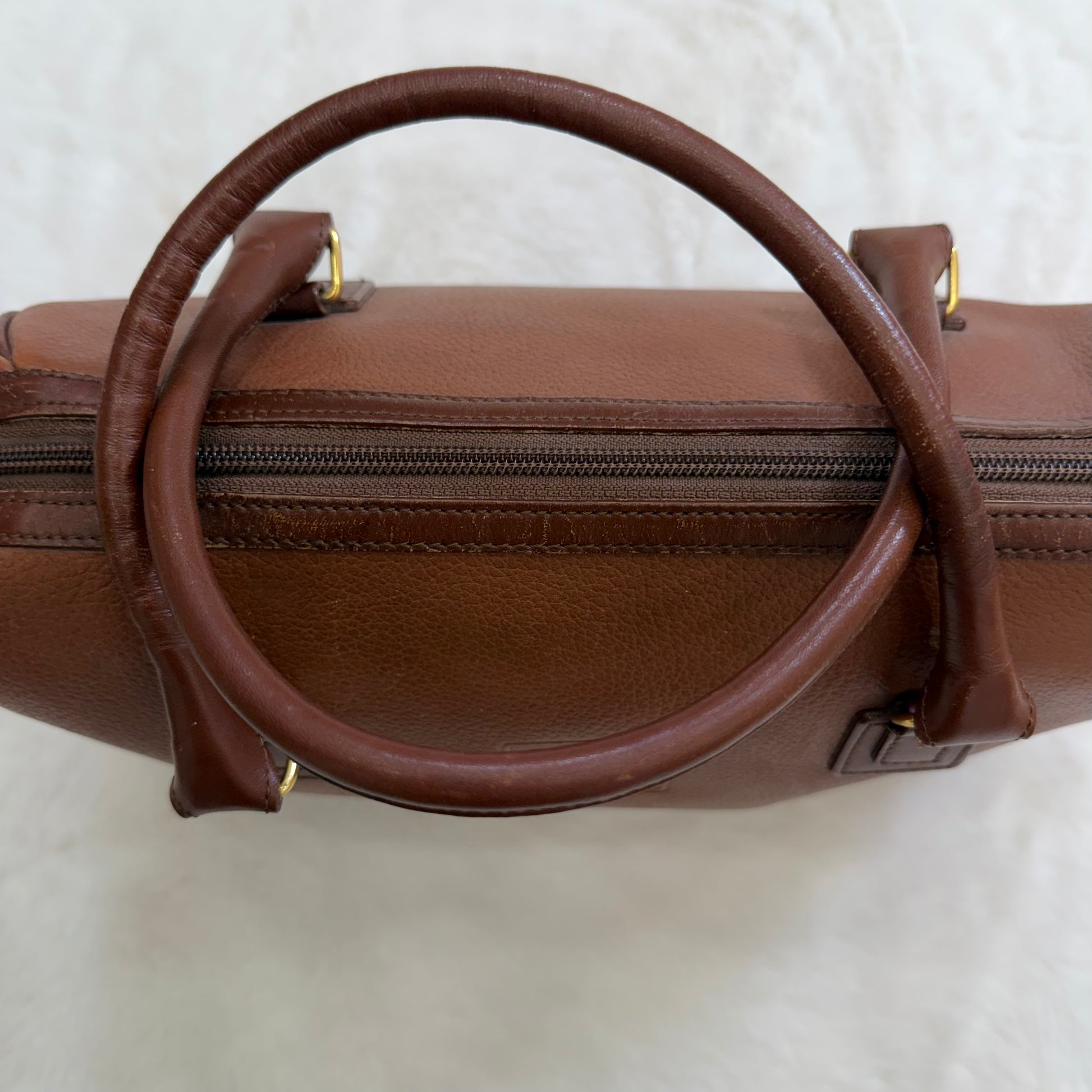 Elevate your ensemble with the Burberry Tan Leather Boston Bag, a timeless accessory crafted from supple tan leather. Its structured silhouette offers ample space for essentials, seamlessly blending practicality with refined style. Perfect for day-to-night wear, this bag embodies sophistication and enduring elegance.