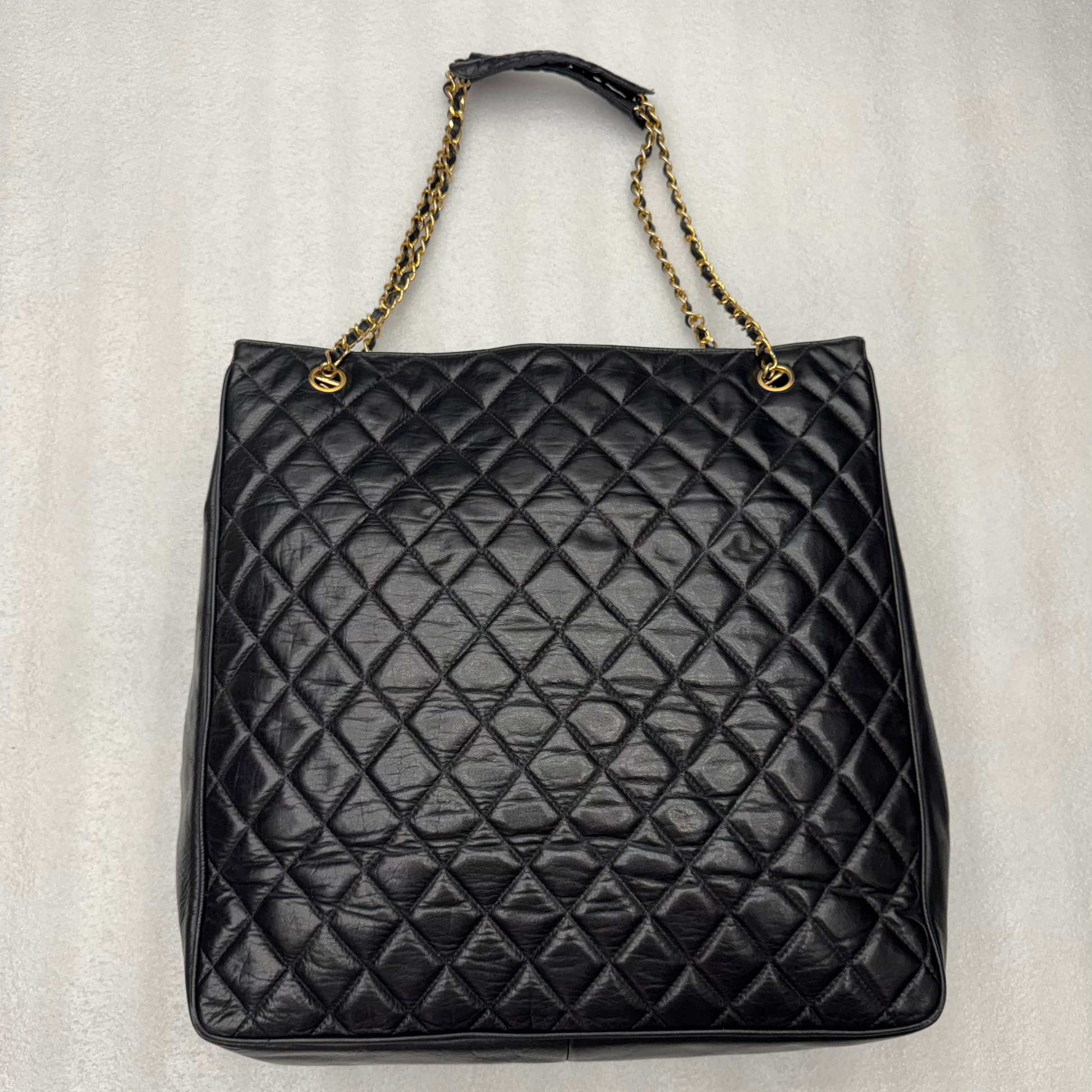 CHANEL Black Lambskin Quilted Tote/Shoulder Bag