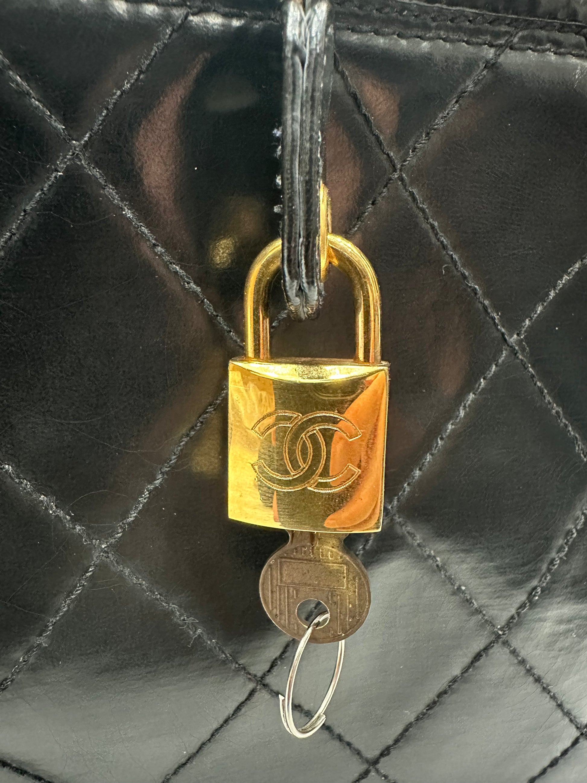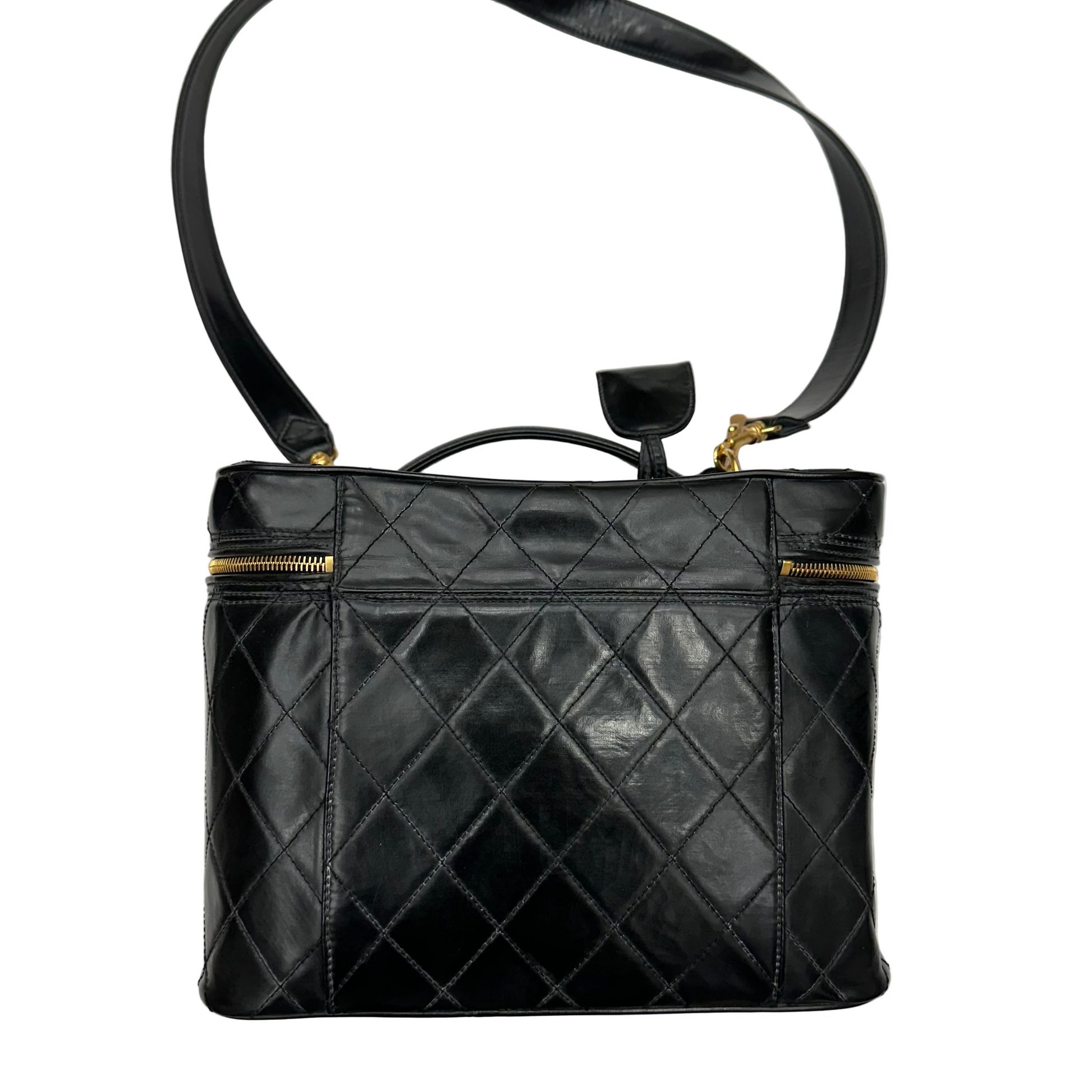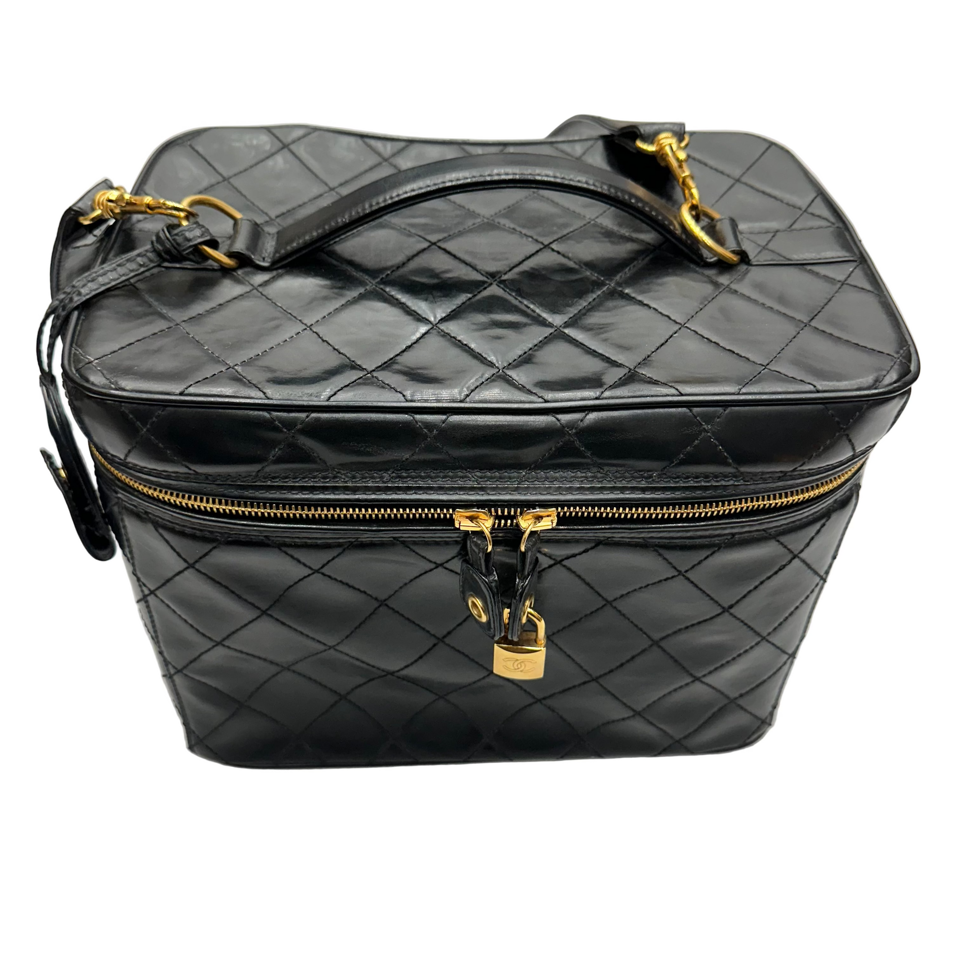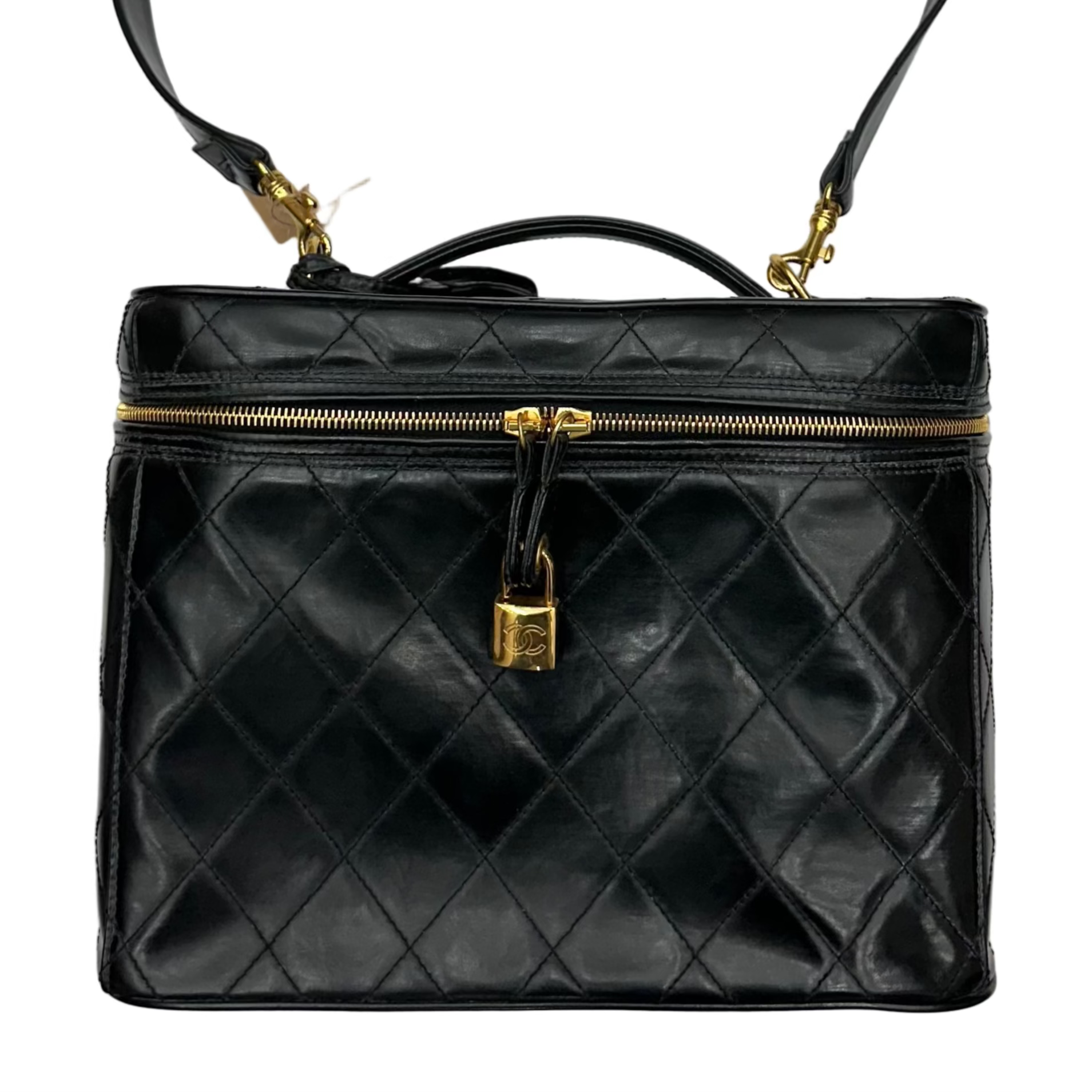CHANEL Black Matelasse Quilted Vanity Handbag