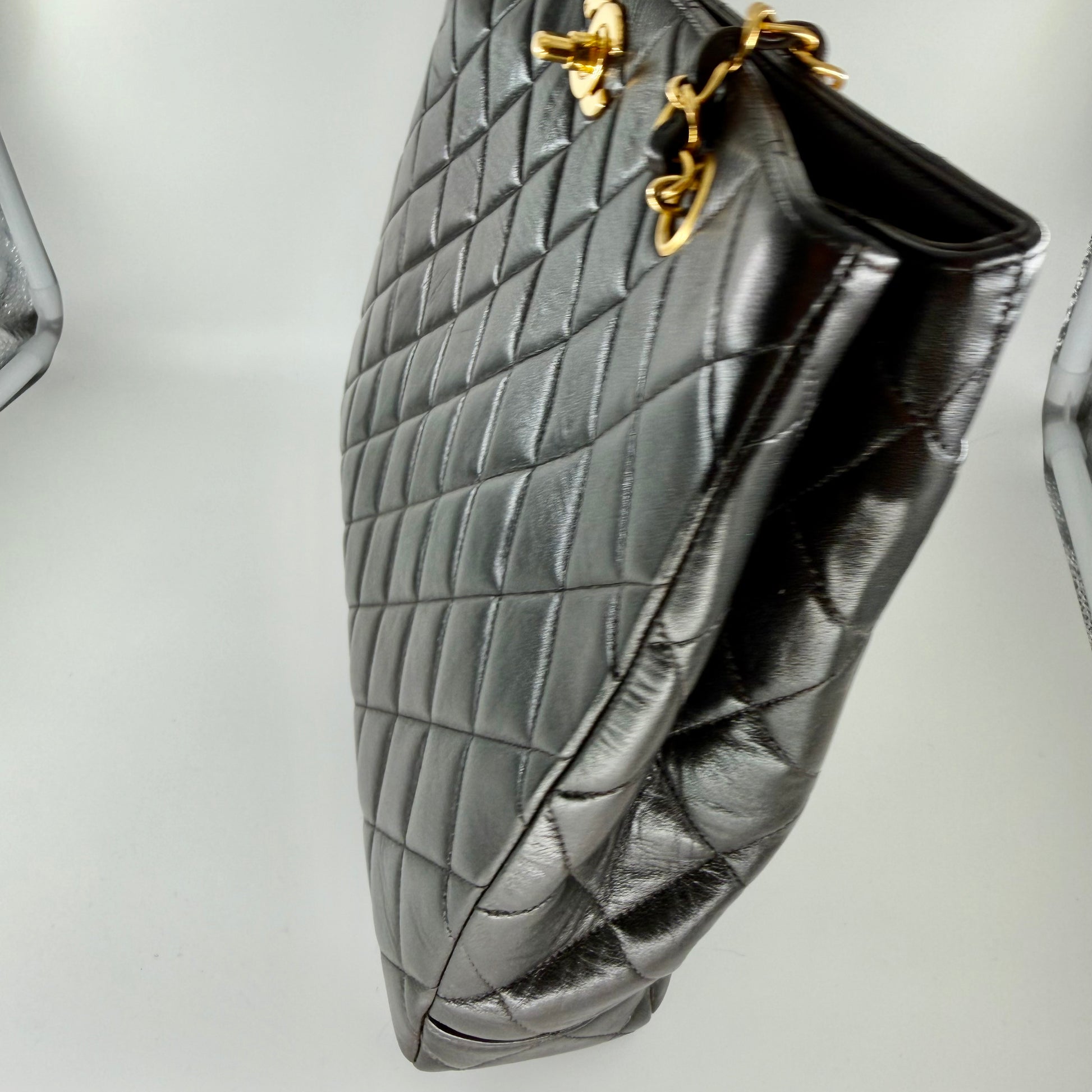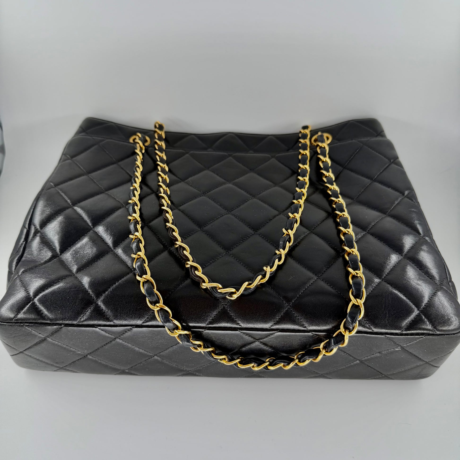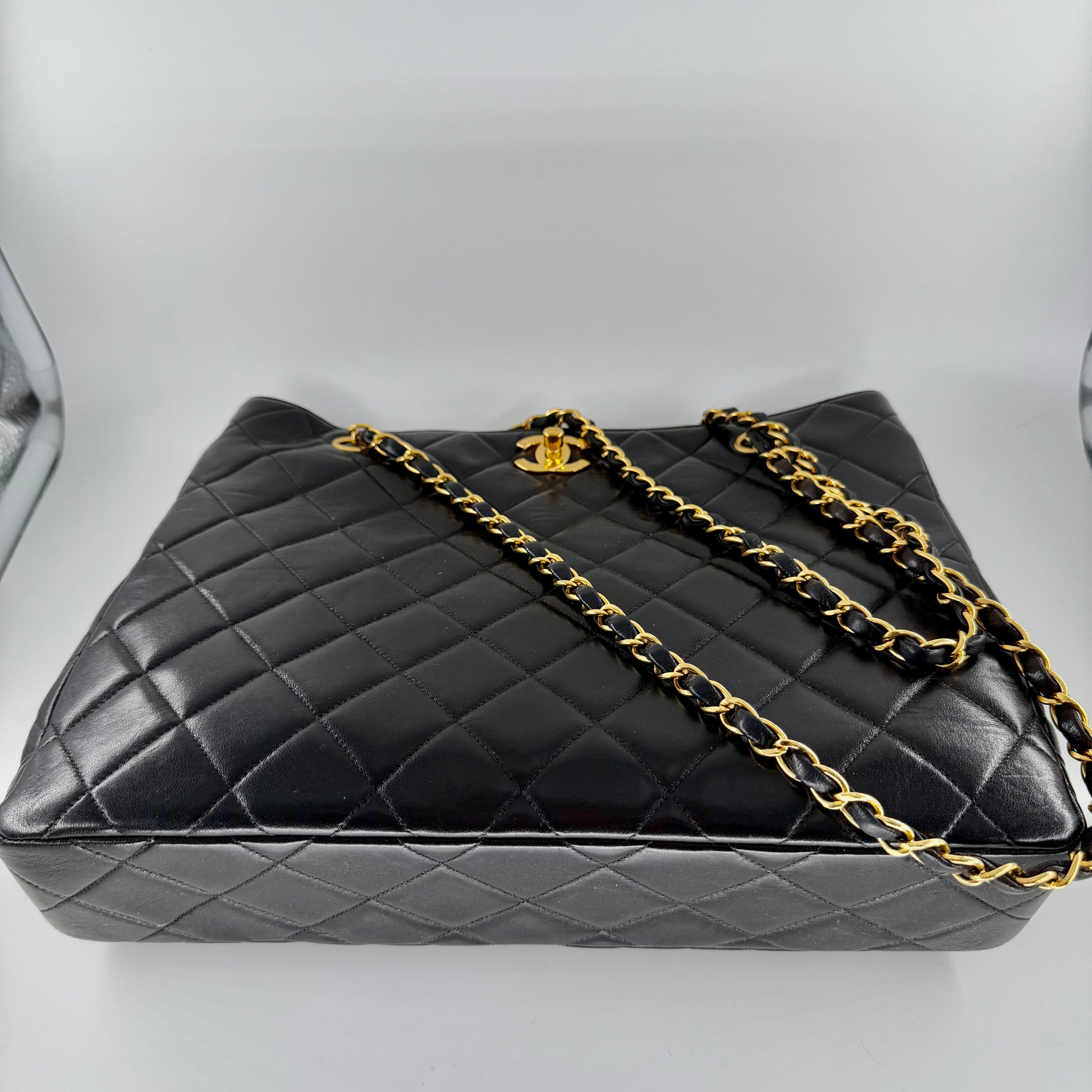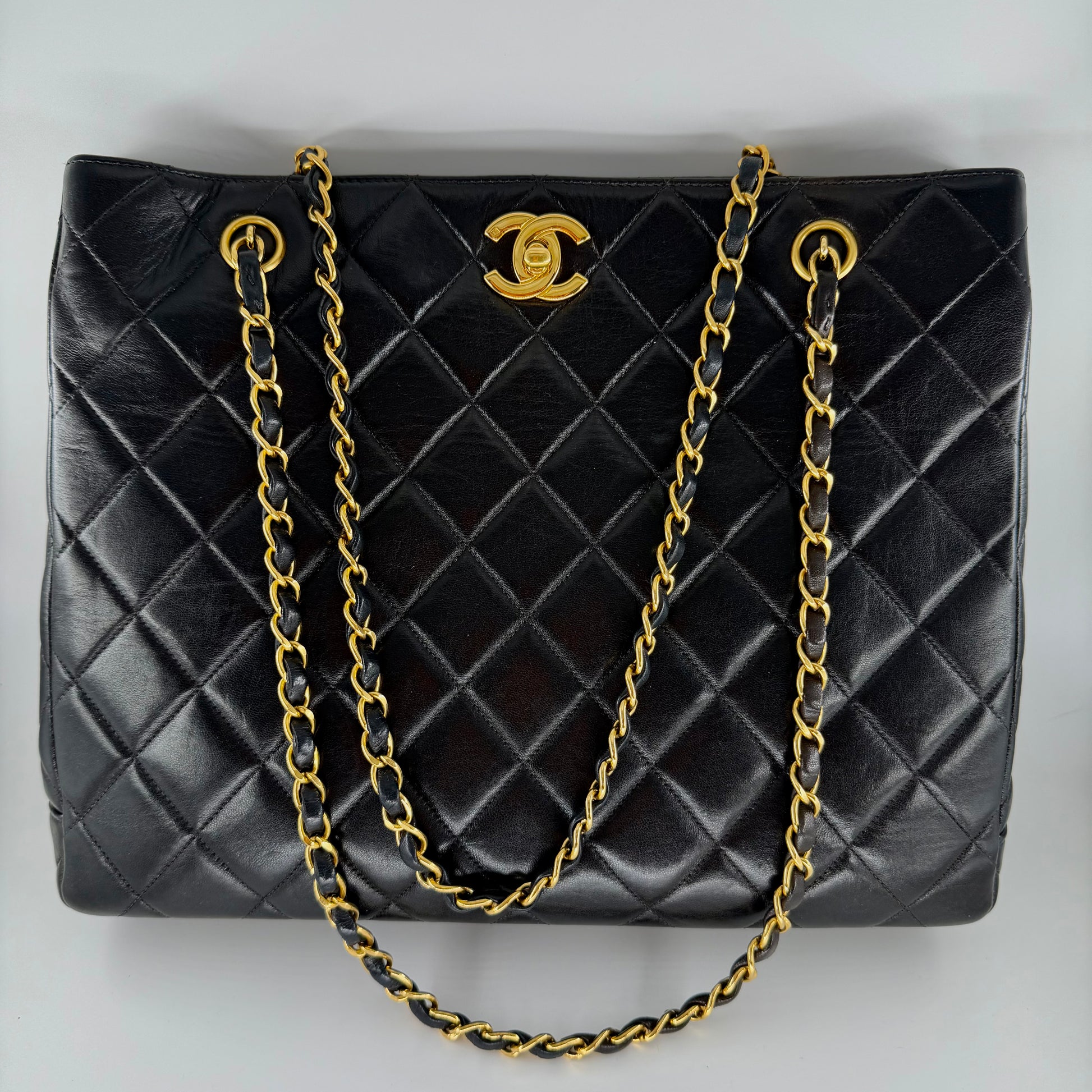Elevate your collection with this Preloved CHANEL Black Quilted CC Tote in luxurious lambskin. Renowned for its signature quilted design and iconic interlocking CC logo, this tote combines timeless elegance with practical sophistication. Crafted from supple lambskin, it offers a smooth texture and durable finish. Its spacious interior seamlessly accommodates essentials, making it ideal for both everyday use and special occasions. A refined accessory that embodies CHANEL’s heritage of craftsmanship and style, perfect for the discerning connoisseur seeking understated luxury.