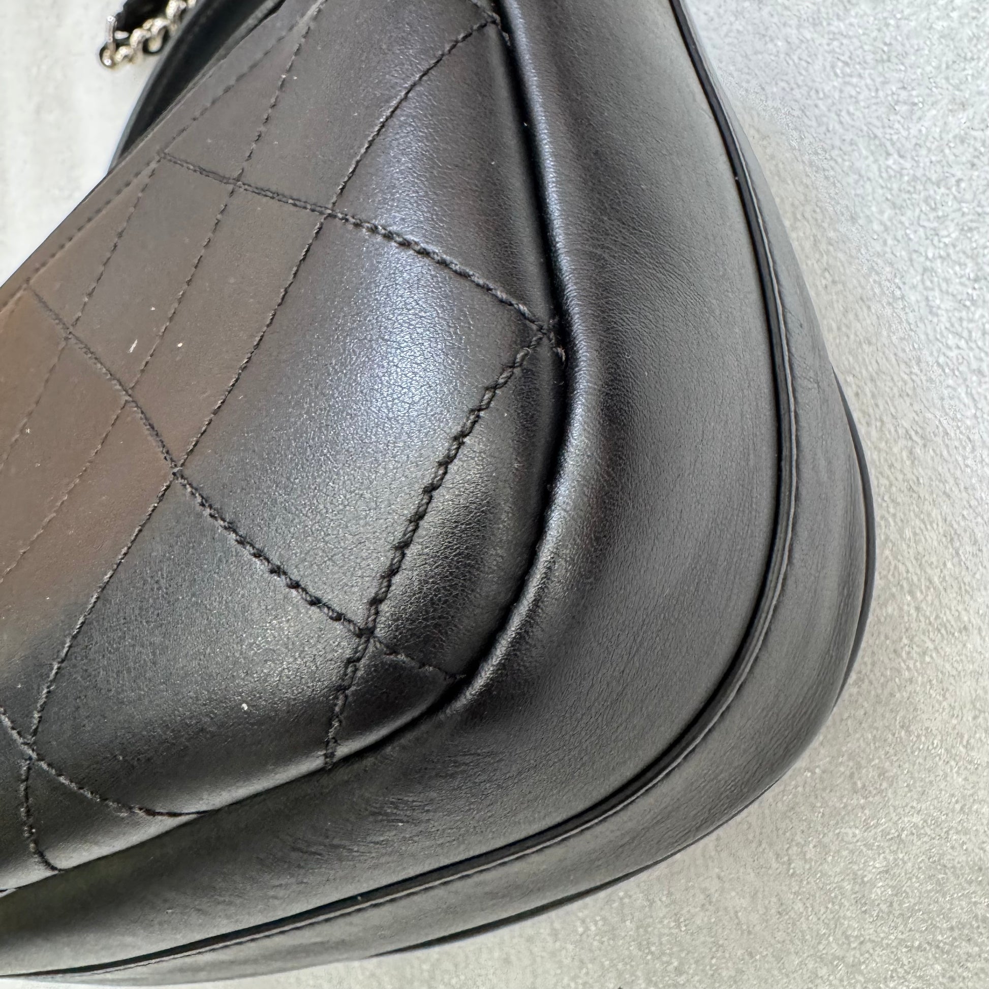 Elevate your ensemble with the CHANEL Black Ring My Bag, crafted from luxurious calfskin. This versatile top handle and crossbody bag seamlessly blends timeless elegance with practical design. Its sleek black finish and signature ring detail offer a refined statement, while adaptable carrying options provide effortless sophistication for day-to-night wear. Perfect for those who appreciate understated luxury and chic functionality.