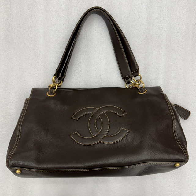 Chanel Dark Brown Lambskin Vintage CC Logo Shoulder Bag