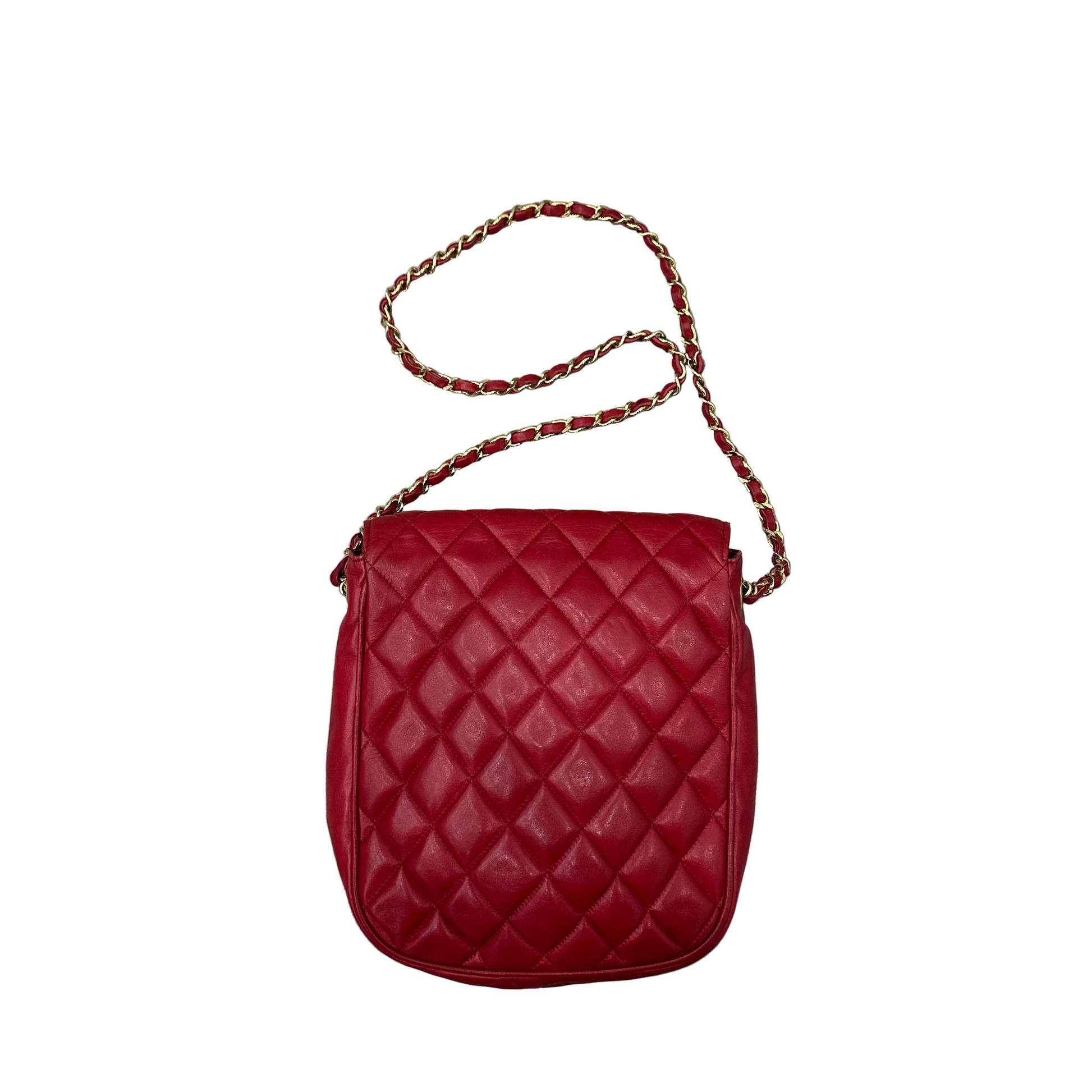 CHANEL Red Quilted Crossbody Bag with Gold Chain