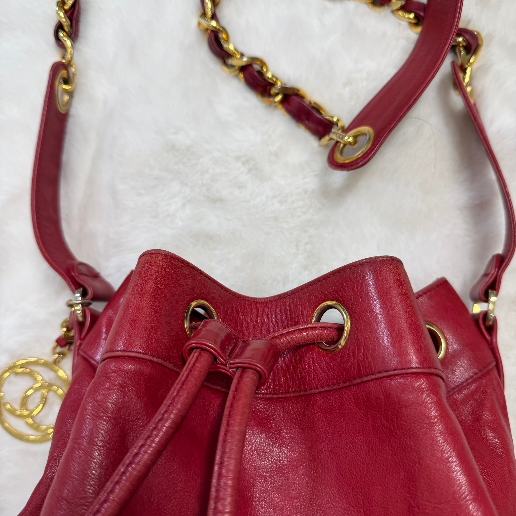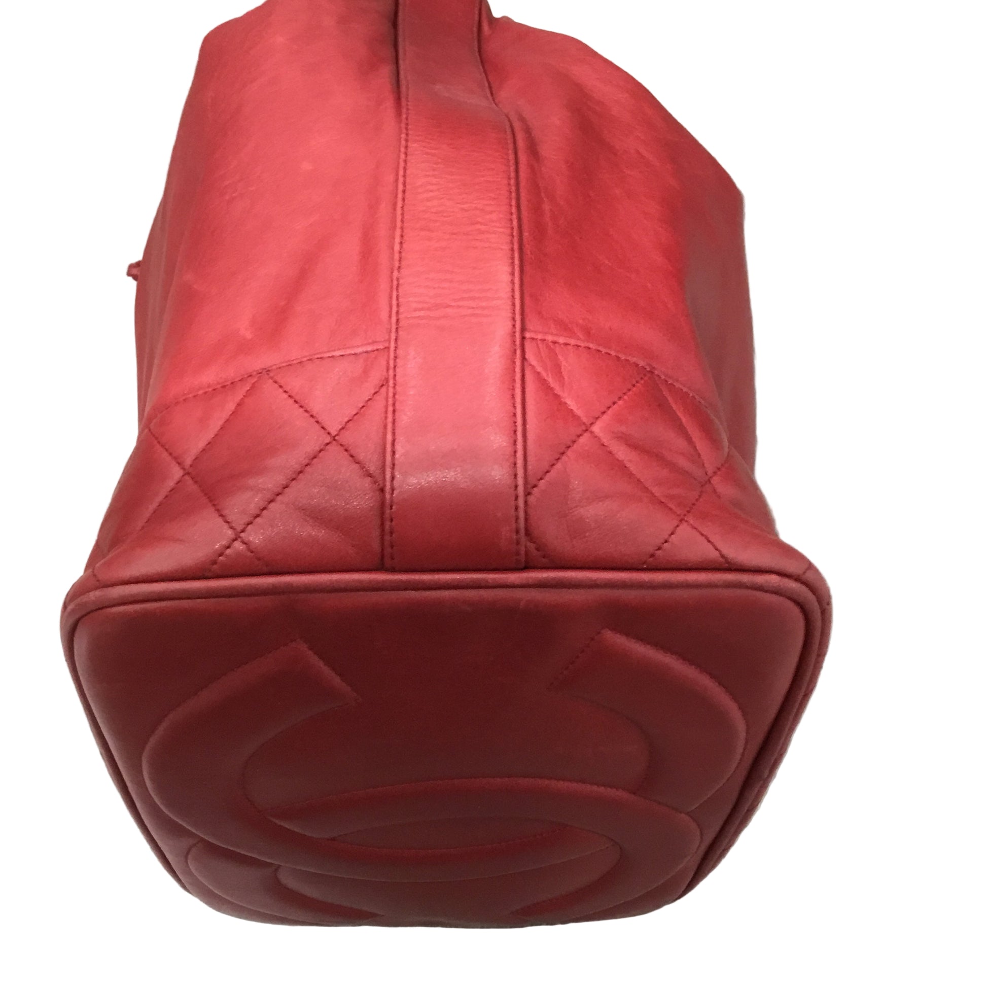 CHANEL Red Lambskin Bucket Tote Crossbody
