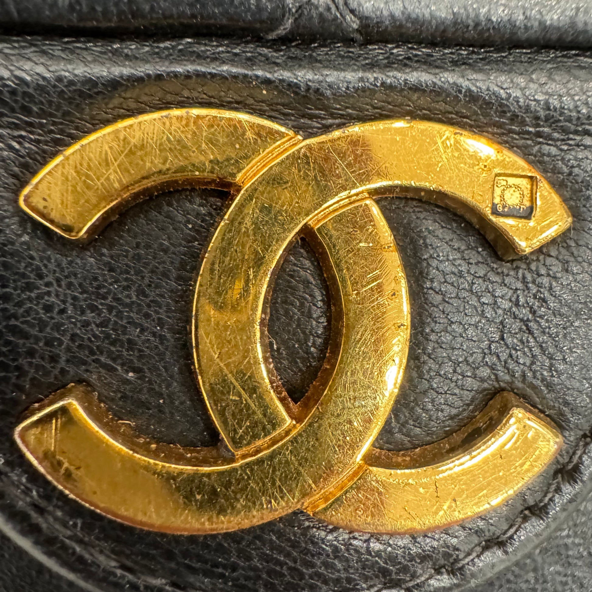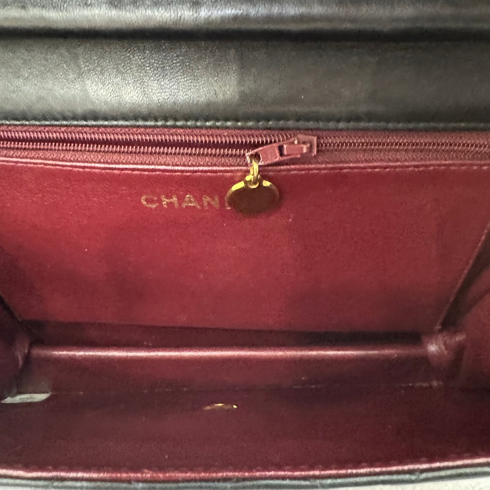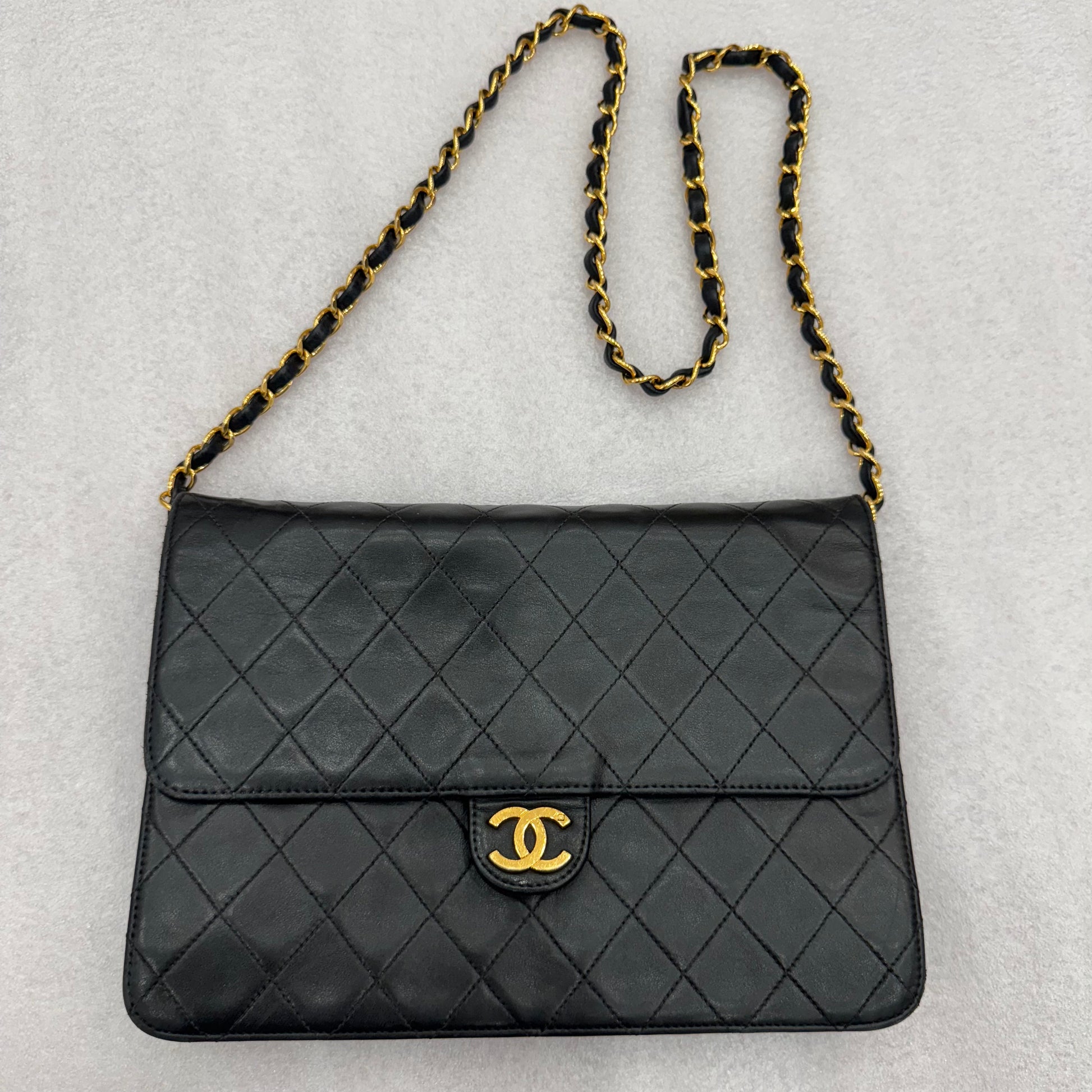 CHANEL Vintage Black Classic Front Flap Lambskin Shoulder Bag