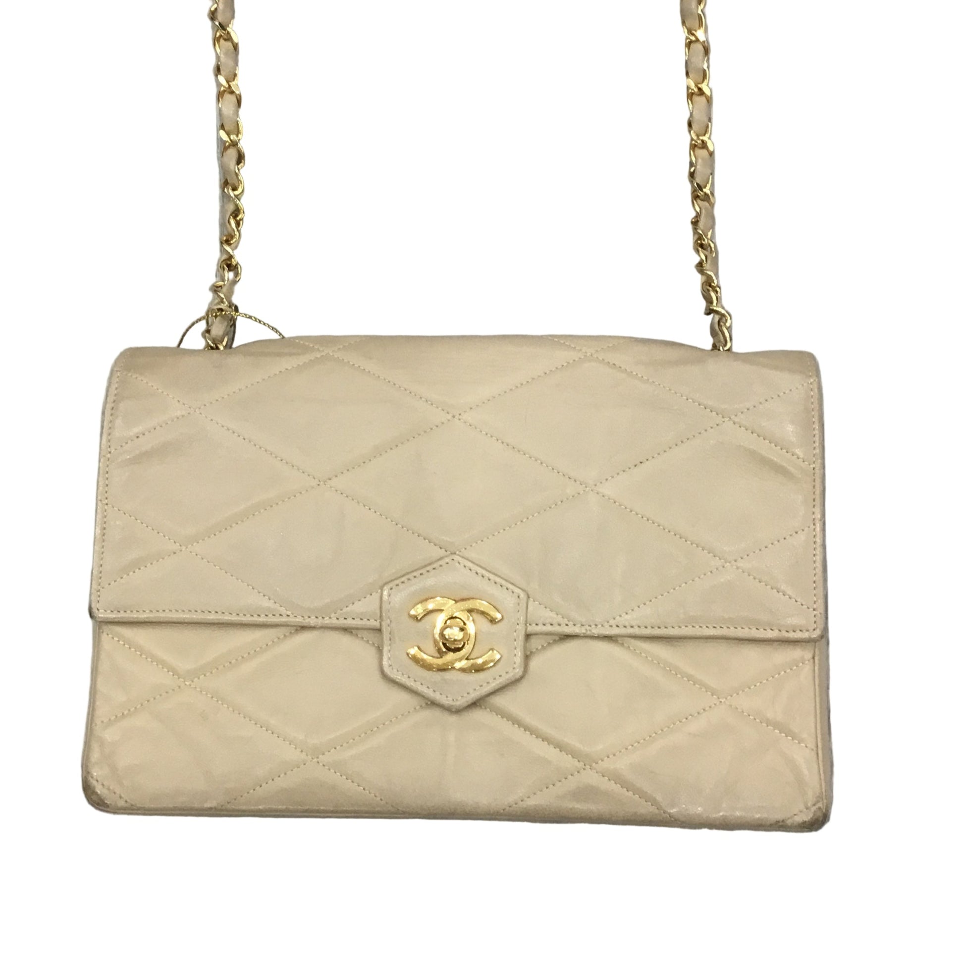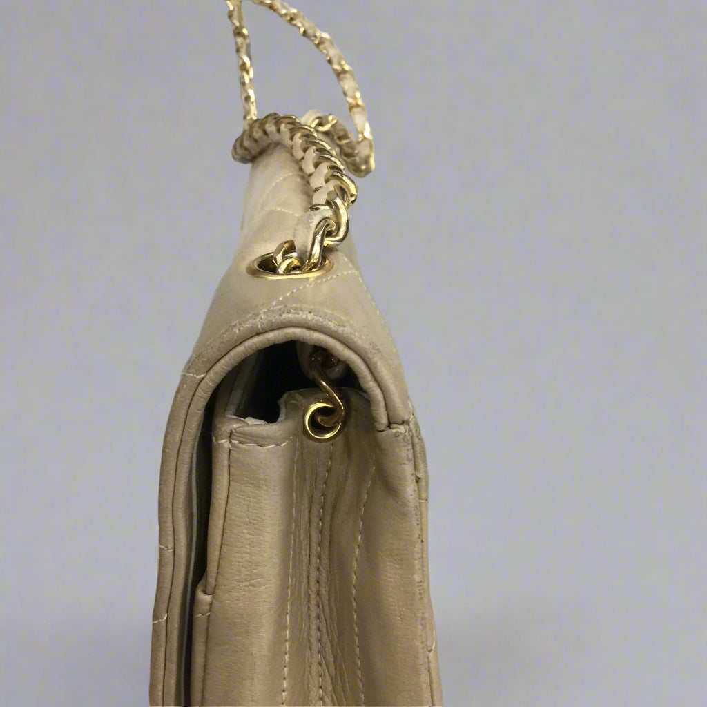 CHANEL Vintage Tan/Beige Single Flap Crossbody/Shoulder Bag