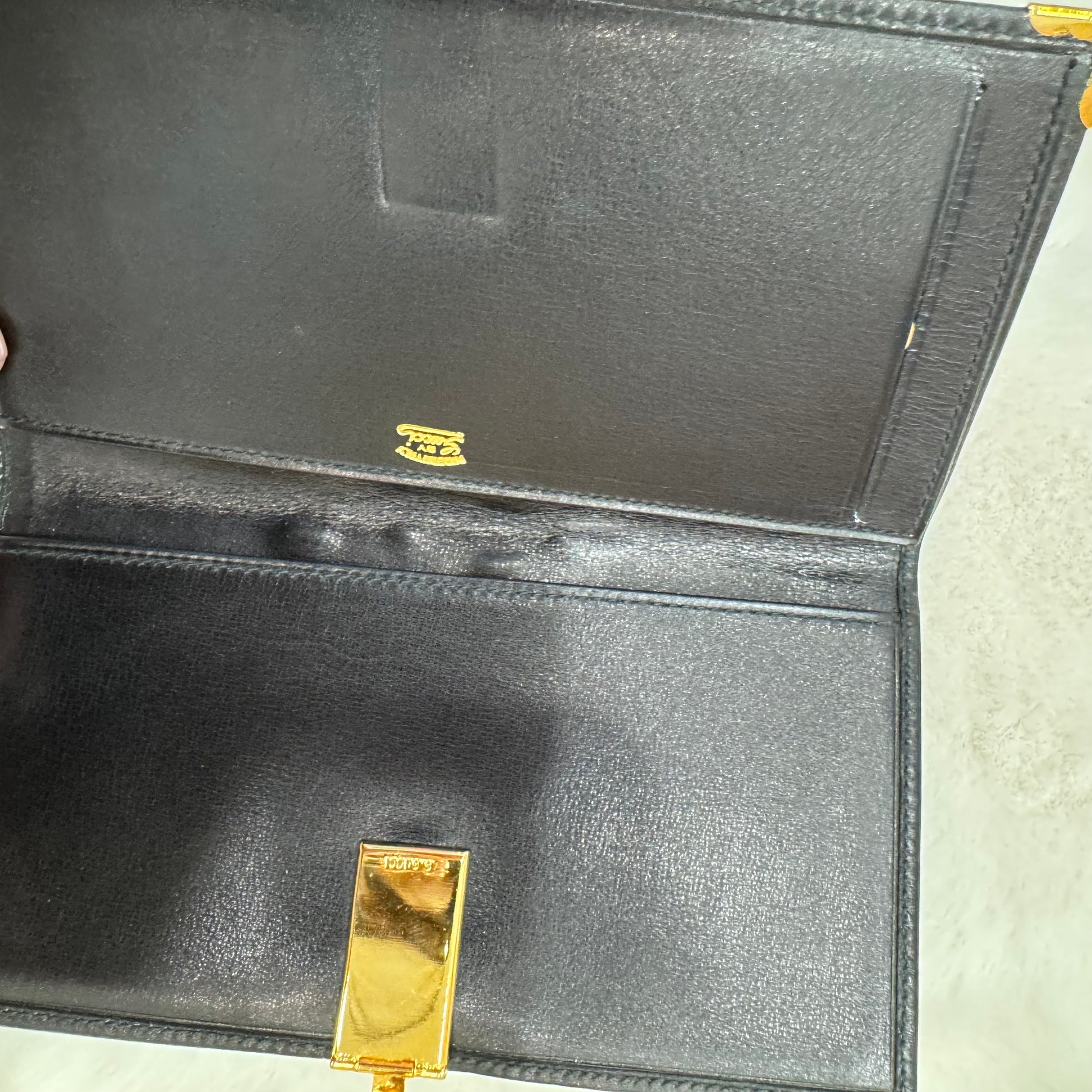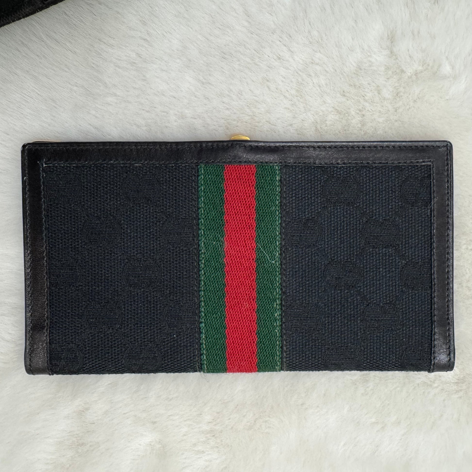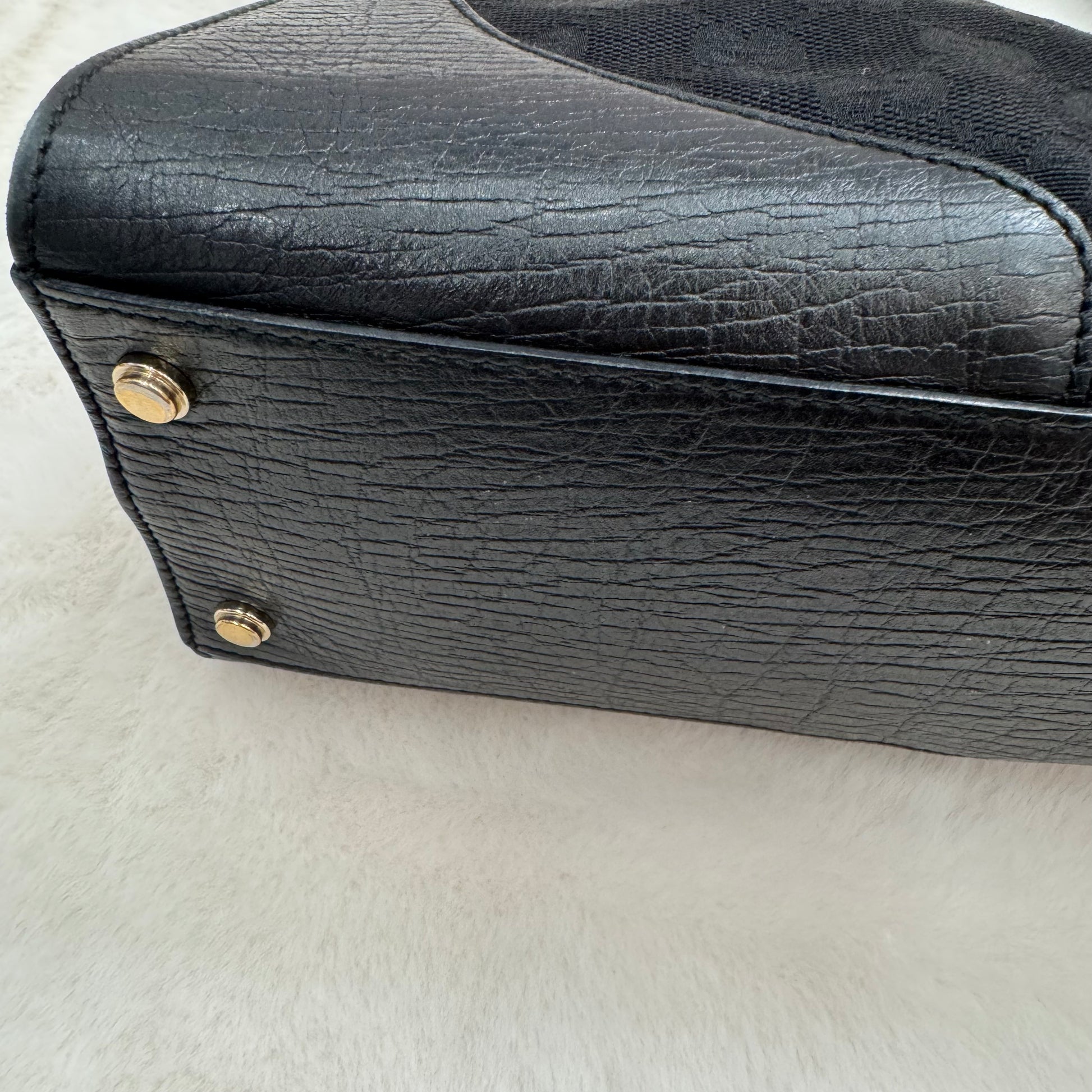 The Gucci Black Monogram Junco Shoulder Bag, enhanced with the iconic Sherry line, embodies timeless sophistication. Featuring distinctive brass interlocking GG hardware, this bag combines secure functionality with elegant design. Its sleek black finish and refined details make it a versatile choice for those seeking understated luxury and effortless style.