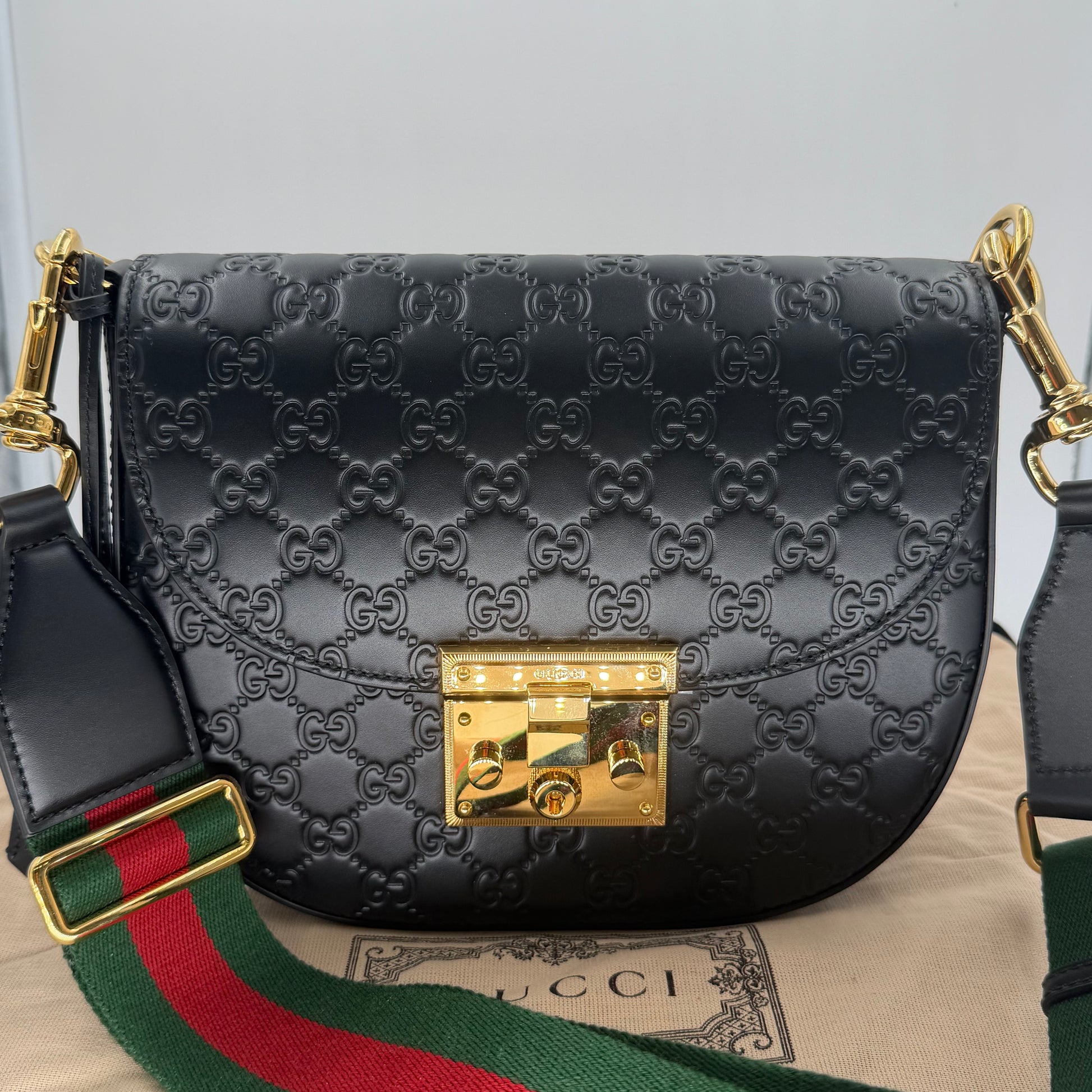 Gucci Black Guccissima Padlock Messenger Crossbody/Shoulder Bag (NEW)