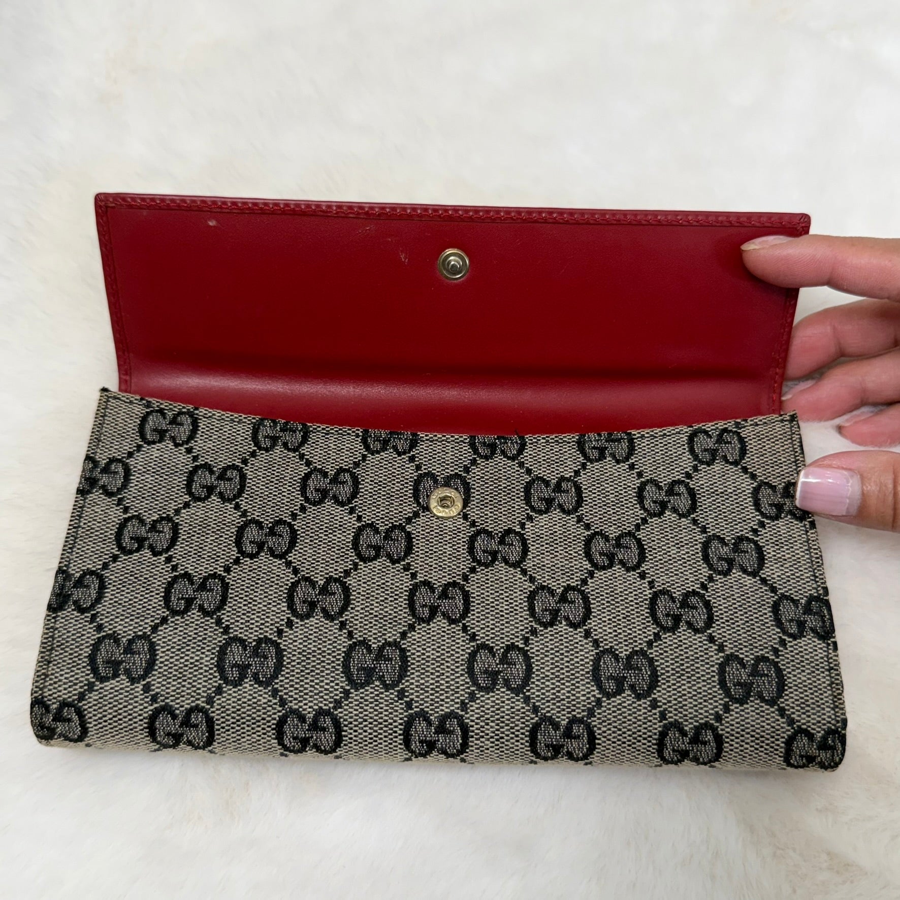 Gucci GG Monogram Red Jackie Vintage Long Wallet