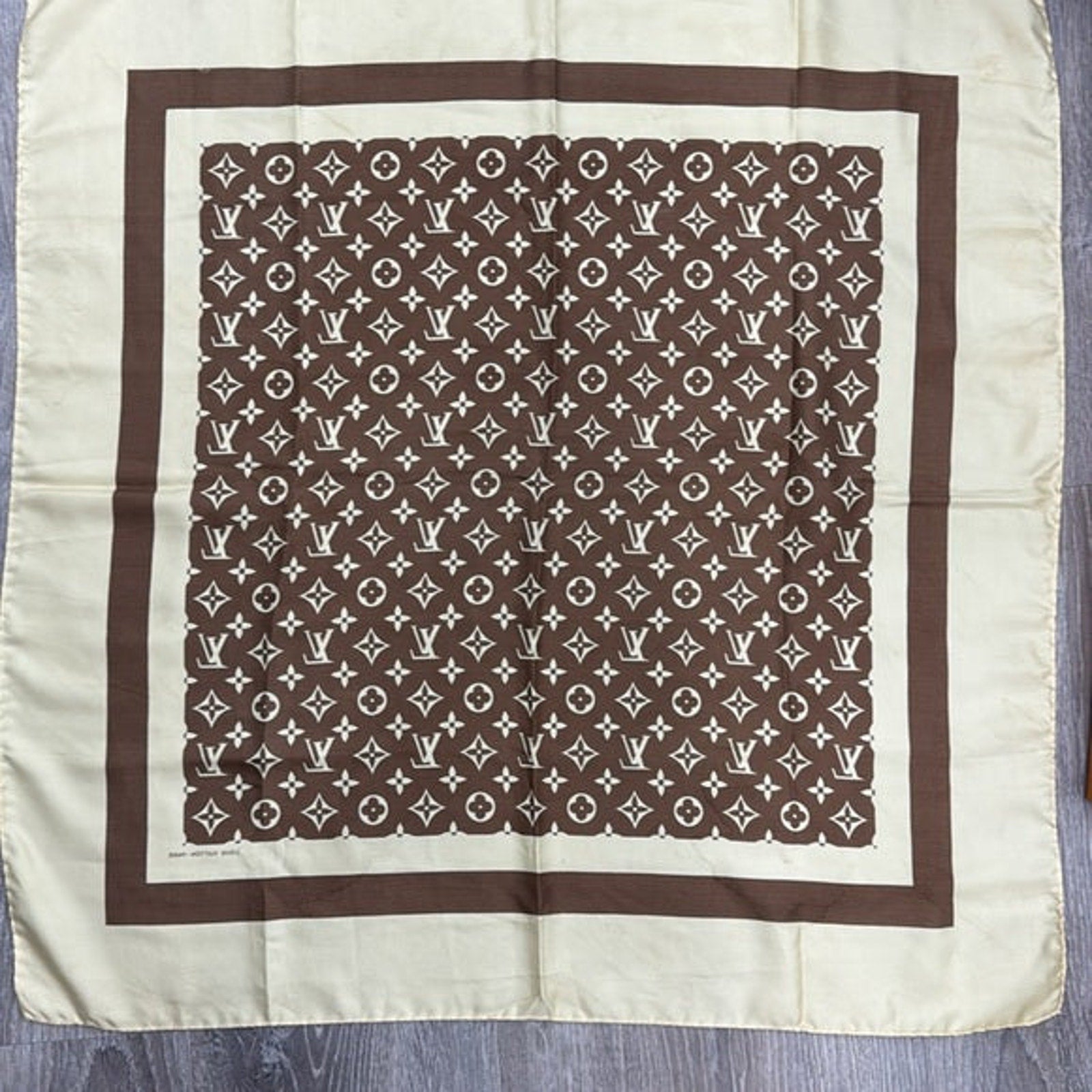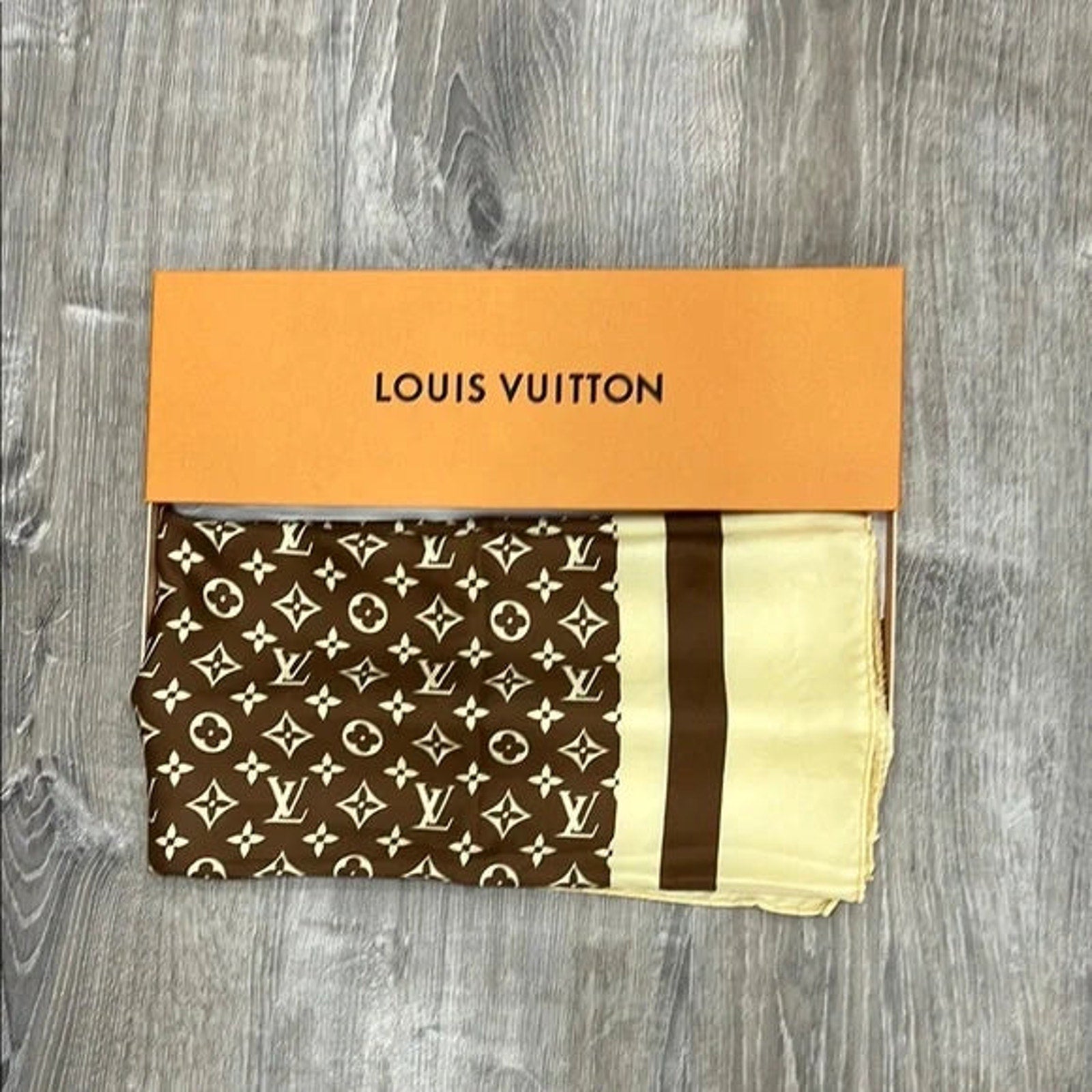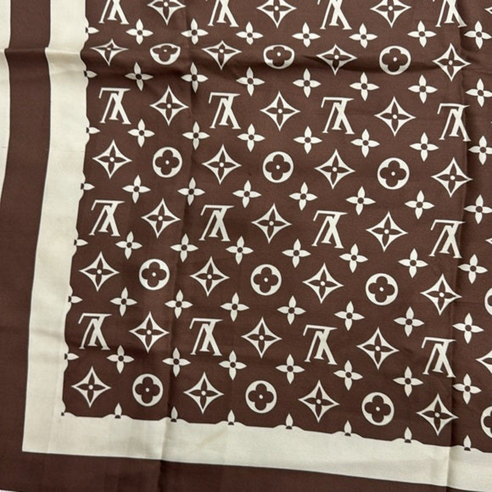 Louis Vuitton Monogram Brown and Cream Silk Scarf